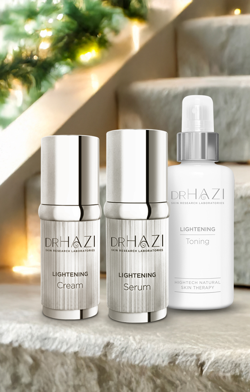 Ajándékozd meg bőrödet az ünnepi ragyogás tiszta, természetes fényével. A DRHAZI Brightening Glow Ritual a pigmentfoltok halványítására és a bőrtónus egységesítésére fejlesztett high-tech, bőrazonos rendszer. Az ikonikus Lightening Cream mellé most két ajándék társul — a koncentrált Lightening Serum és a frissítő Toning Milk — így egy teljes, professzionális otthoni pigmentkezelő rituálé lépésről lépésre támogatja a bőr megújulását. Egy ünnepi csomag, amely visszaadja a bőr tisztaságát, fényességét és harmóniáját.