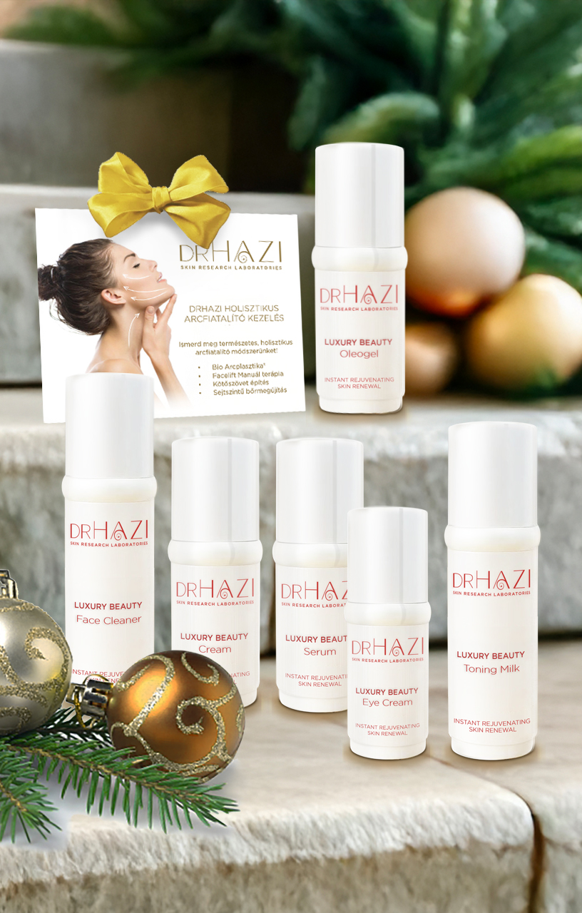 Ajándékozd meg magad vagy szeretteidet egy valódi luxus anti-age élménnyel. A DRHAZI Essential Lifting Ritual a holisztikus arcfiatalítás egyik legkiemelkedőbb programja: 6 alkalmas Luxus Anti Age kezelés, amely mélyszerkezetben regenerálja és feszesíti a bőrt. A karácsonyi időszakban a professzionális kúra mellé most ajándékba választható otthoni Ageless Beauty kezelési sort kapsz – Soft, Facelift vagy Nourishing –, így a megkezdett lifting és sejtmegújítás otthon is tovább folytatódik. Ez a csomag a természetes anti-aging legmagasabb szintje: strukturális megújulás, ragyogó tónus és tartós feszesség.