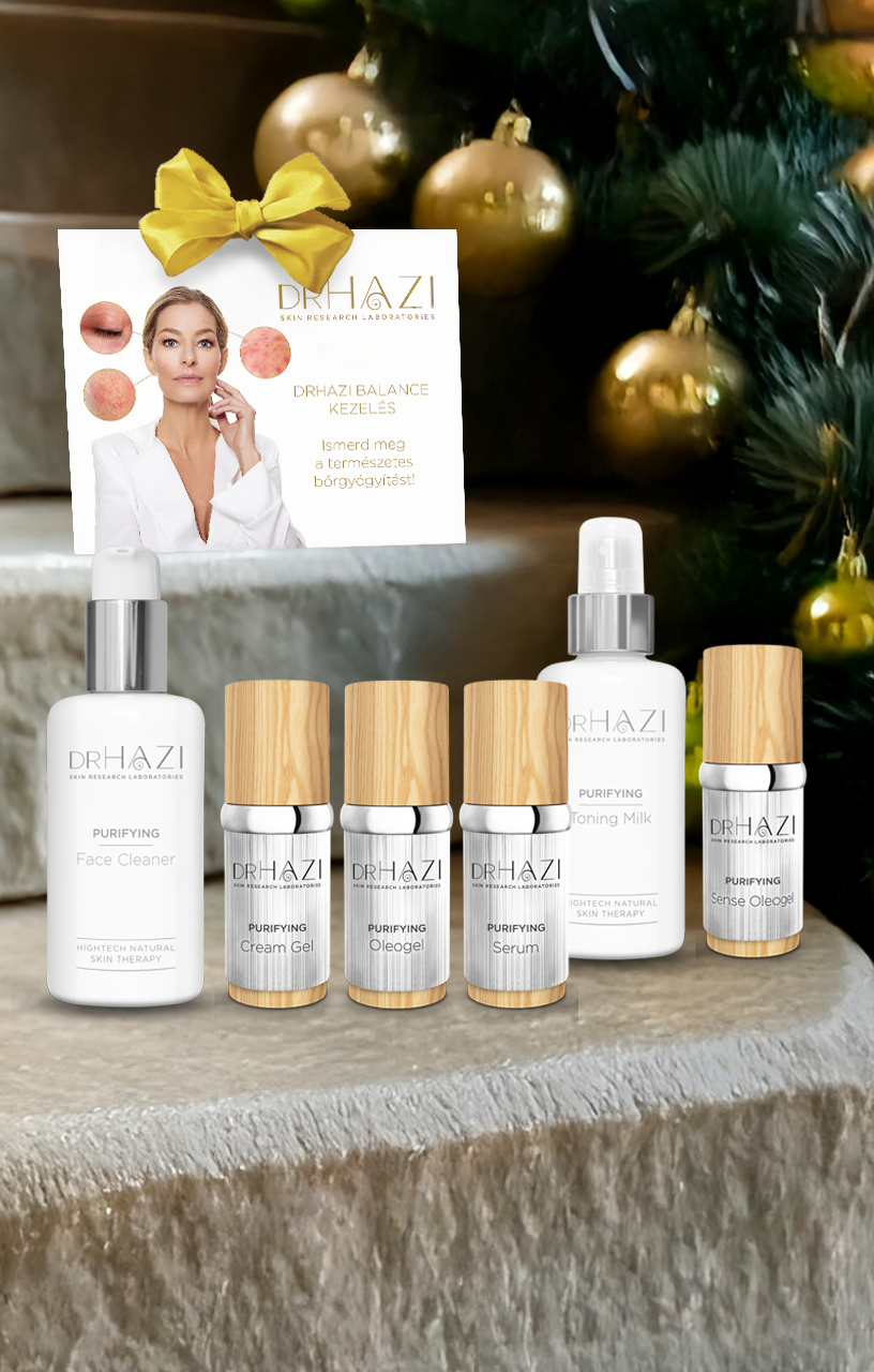 Add ajándékba a nyugodt, tiszta, harmonikus bőr ajándékát — önmagadnak vagy egy szerettednek. A DRHAZI Calm & Clear Ritual a bőr helyreállításának egyik legkedveltebb, legkomplexebb programja: 9 alkalmas professzionális Balance kezelés, amely kifejezetten rosaceára, aknéra és demodex eredetű gyulladásokra készült. A karácsonyi időszakban a kezelés mellé most ajándékba választhatsz három otthoni rendszer közül — PURIFYING, PURE vagy személyre szabott KEVERT csomagot — támogatva ezzel a tartós bőrnyugtatást és a gyulladásmentes regenerációt. Ez a csomag a tiszta, egészséges bőr luxusa — természetes, bőrazonos összetevőkkel.